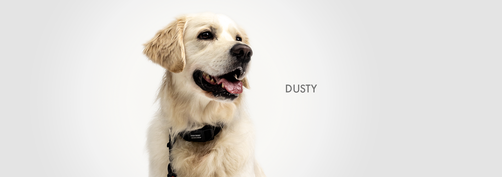 Dusty is wearing the Neo Classic Collar in size Large. Paired with Marine Leash.