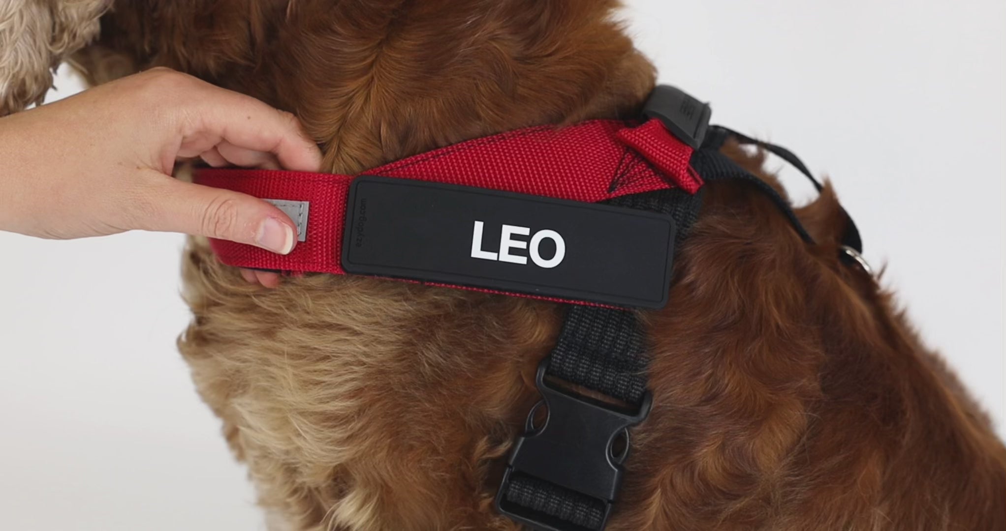 Discover our range of customisable Dog Harnesses and Backpacks with Personalised Side Labels. Simply input your chosen text, whether it's your dog's name, a favourite nickname, contact details, or a personal message, and we will print it onto a Velcro side label. Attach it effortlessly to a selection of our custom-ready EzyDog Products. Personalise your gear to embody the special connection you share with your furry friend.